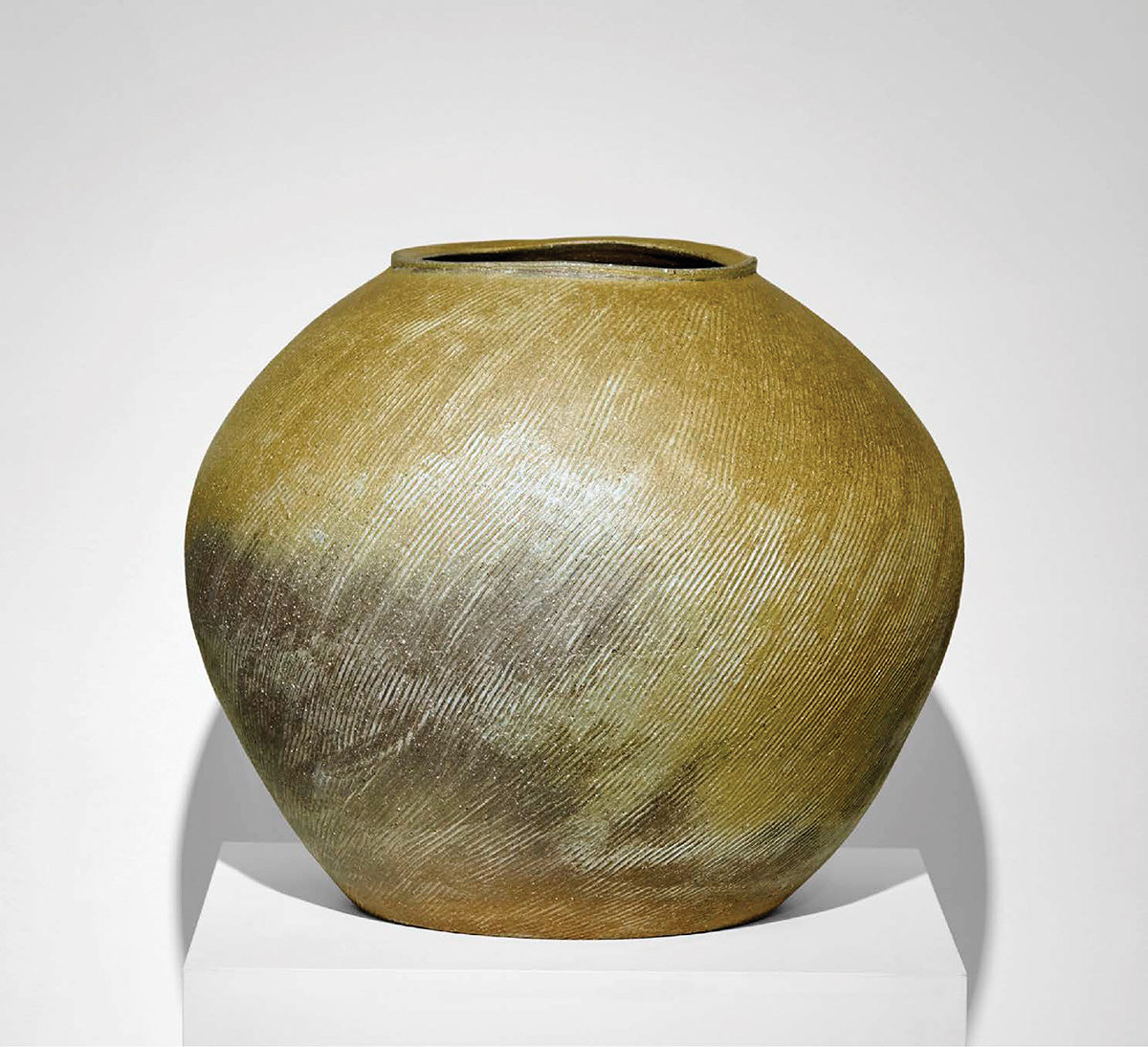 All works are carefully fired in an extremely labor-intensive process, nurturing high temperatures in wood-fired kilns for over a week. The final form of work is a marriage of the natural marks left by the wood-fire, and expert vision of Inchin Lee.